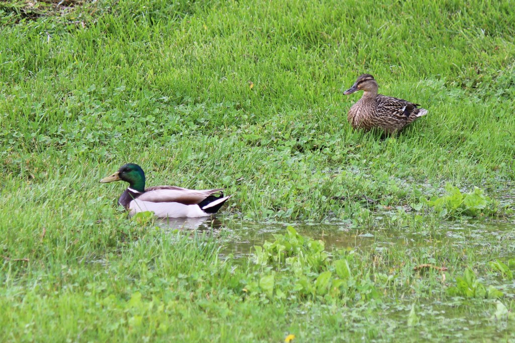 Two guests enjoying the temporary “pond” at the edge of our yard