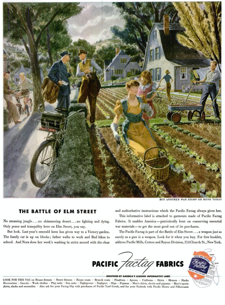 • All kinds of ads showed the home front folks doing their part for the war effort. “Rosie the Riveter” women worked in aircraft plants, baked cookies for soldiers, bought war bonds, nursed the wounded—getting praise as hometown “heroes,” like the healthcare workers cheered today from urban rooftops, “thank-you” signs, and car-honking parades.