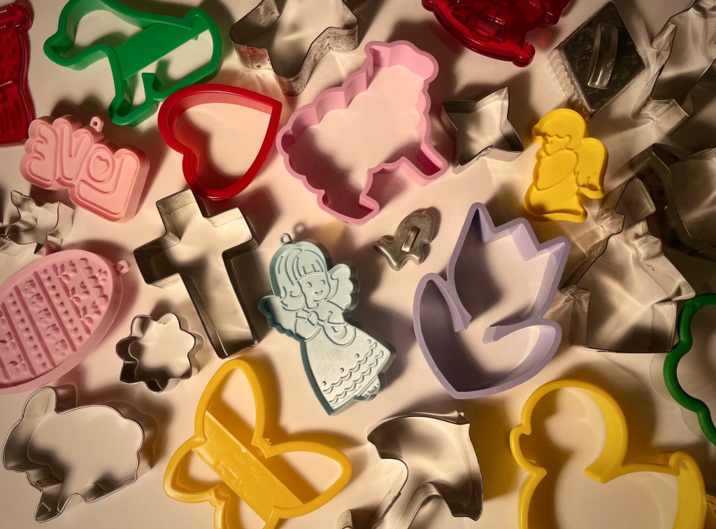 Out of my hundred or so cookie cutters (yes, I love baking cookies), there are a few angels. When I sorted the collection several years ago according to seasons/holidays, I tossed the angels into the Christmas bag.