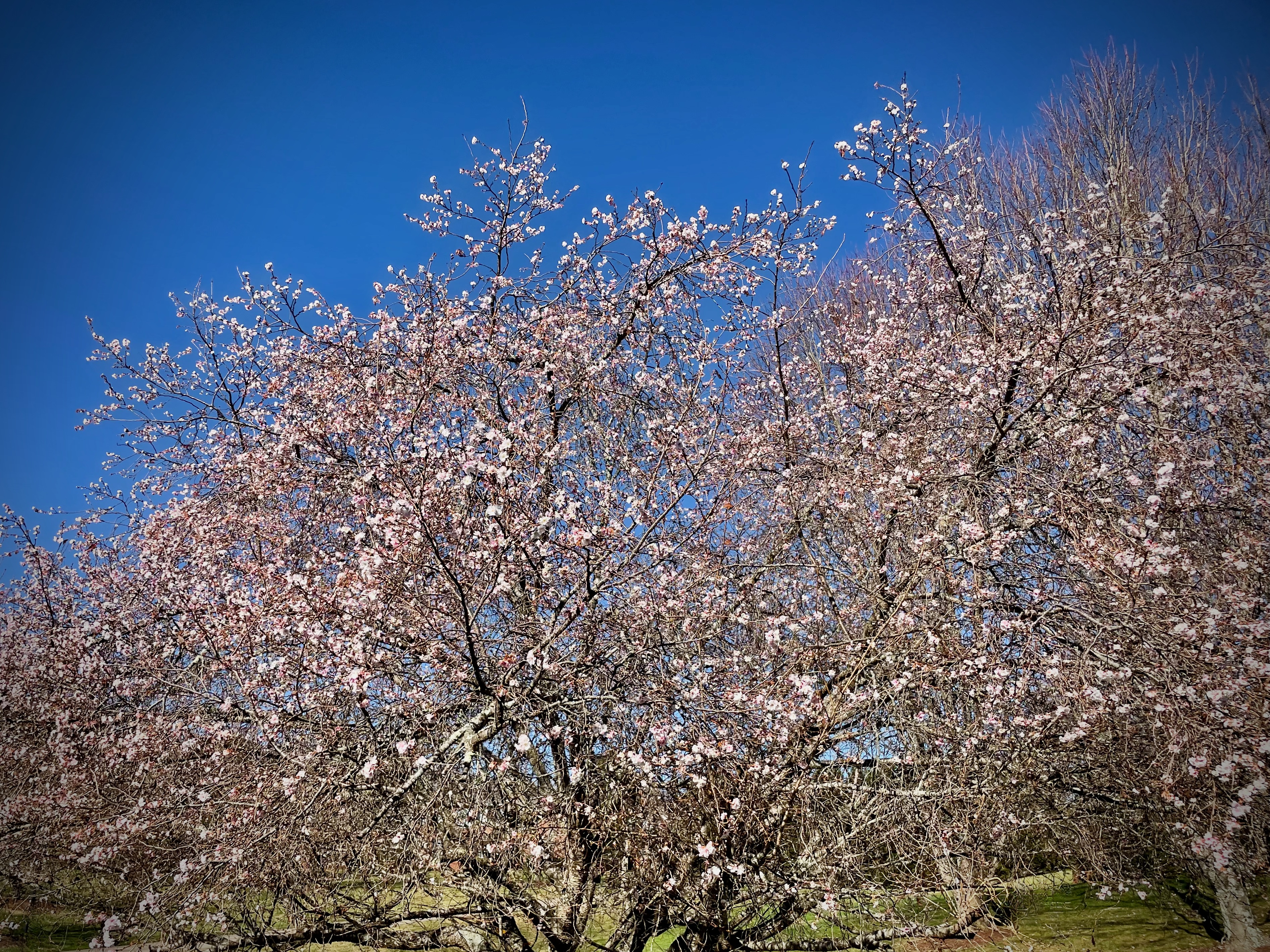 A confused flowering tree in our yard—it blooms in spring and fall, usually right around the time we change our clocks….