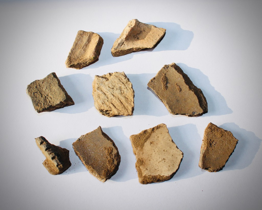 Some of the pottery fragments I picked up at the Cherokee archeological site