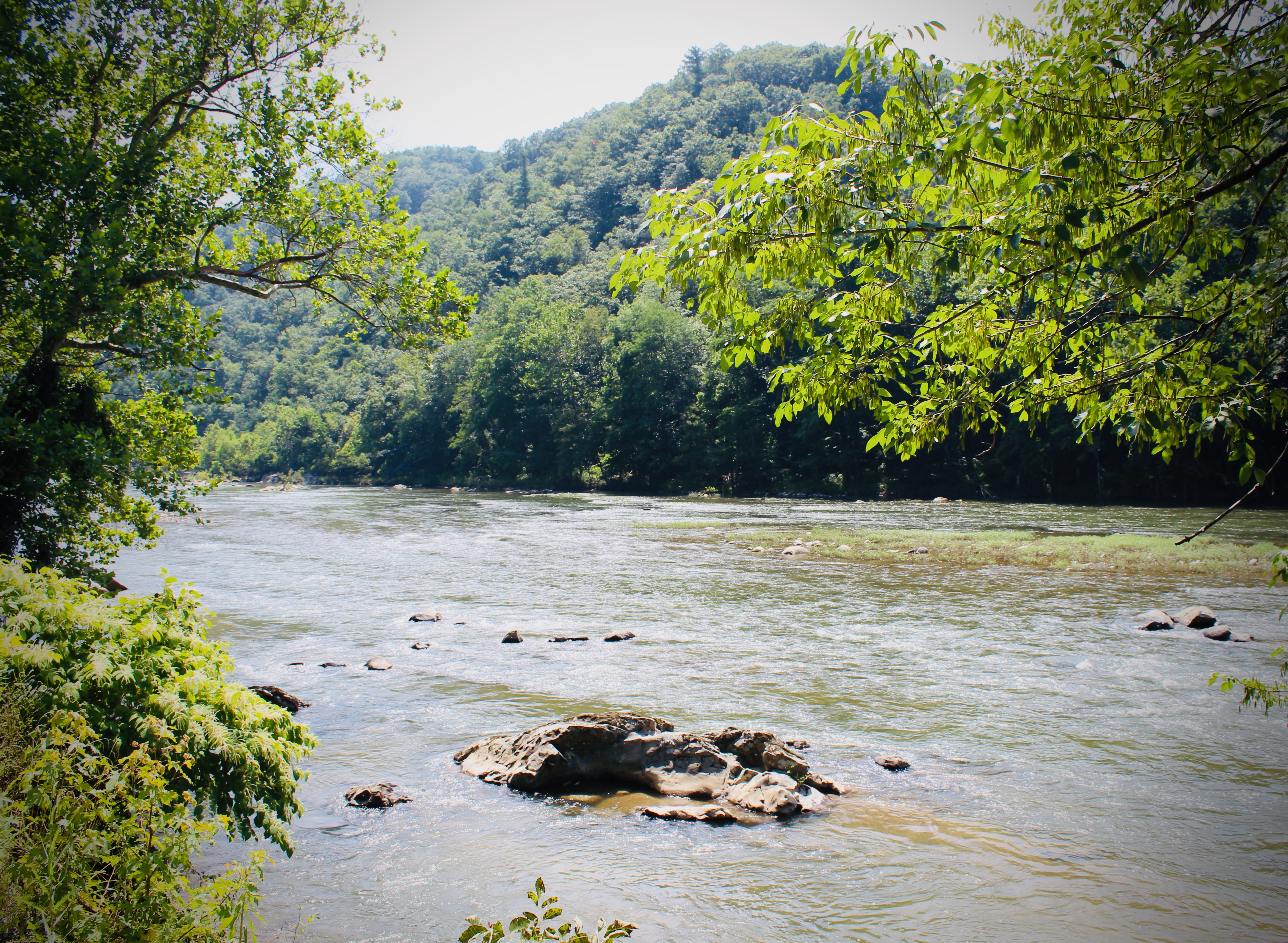 The scenic Nolichucky River, a serene backdrop for the 1600s Cherokee village