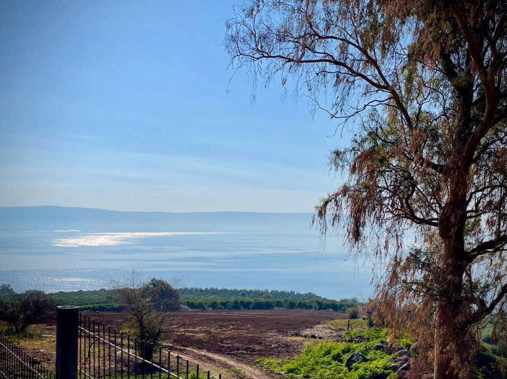 My husband and me, during a boat ride on the Sea of Galilee–the mountains in the background are on the eastern shore, possibly where the demoniac lived