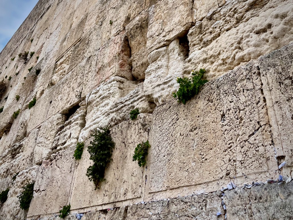 The limestone wall on the western side of the Temple Mount is the holiest place for Jews to pray, and they gather there to lift up their laments to the Lord…in silence and in writing. Folded scraps of paper are stuffed into every crevice within reach on the 60-feet-high edifice.