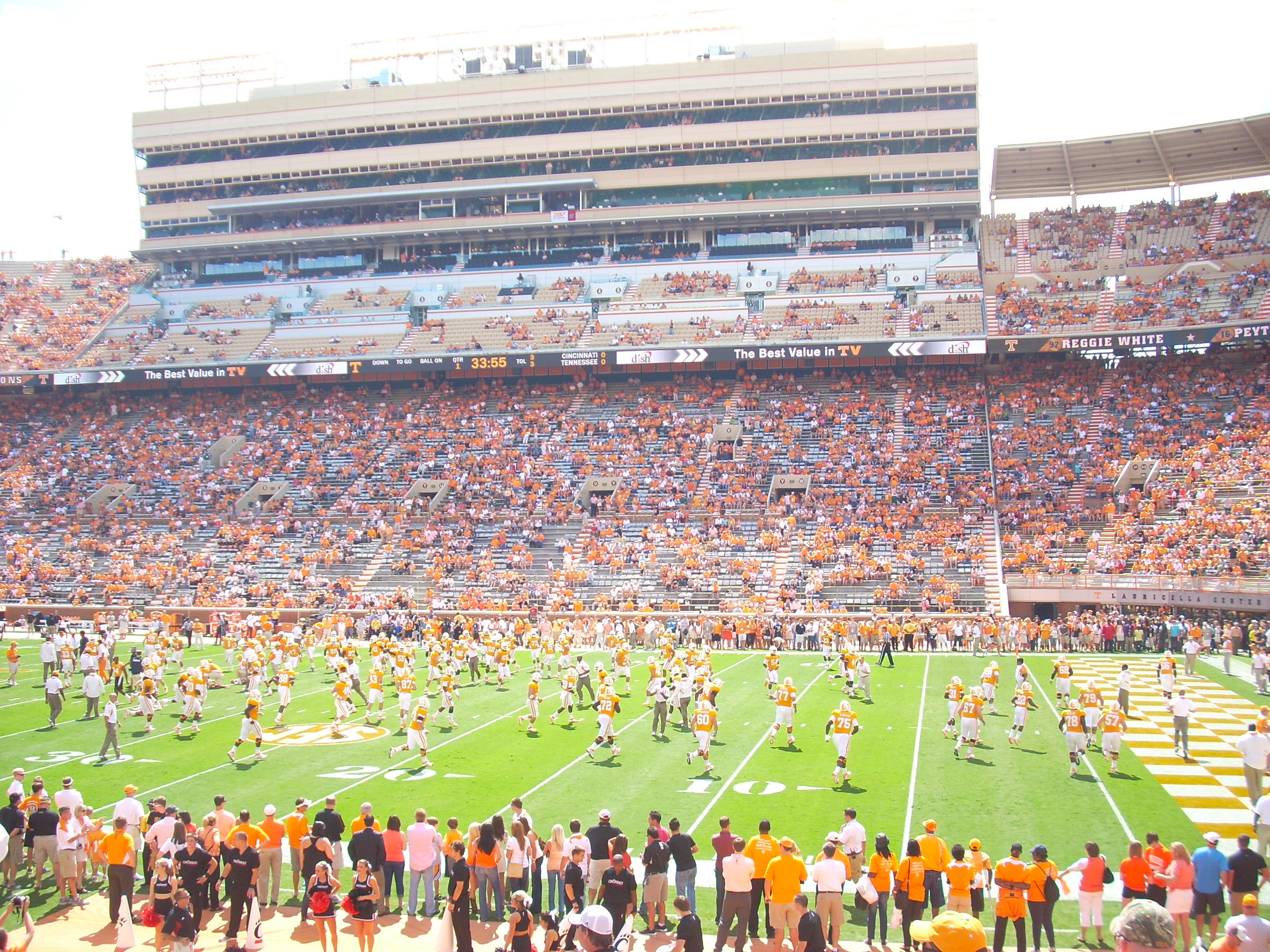 I’ve attended quite a few games in that stadium, unforgettable and quite intimidating for opposing teams—picture 100,000 screaming Vol fans in orange and white. The noise is deafening. People go crazy.1 I wear earplugs and just try to stay away from flying popcorn and soda.