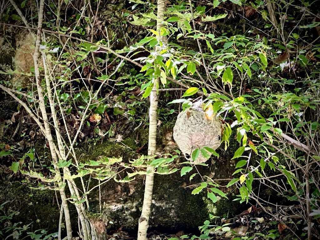 I photographed this hornets’ nest from the safety of our car while on a forest road…it looked larger than a basketball.